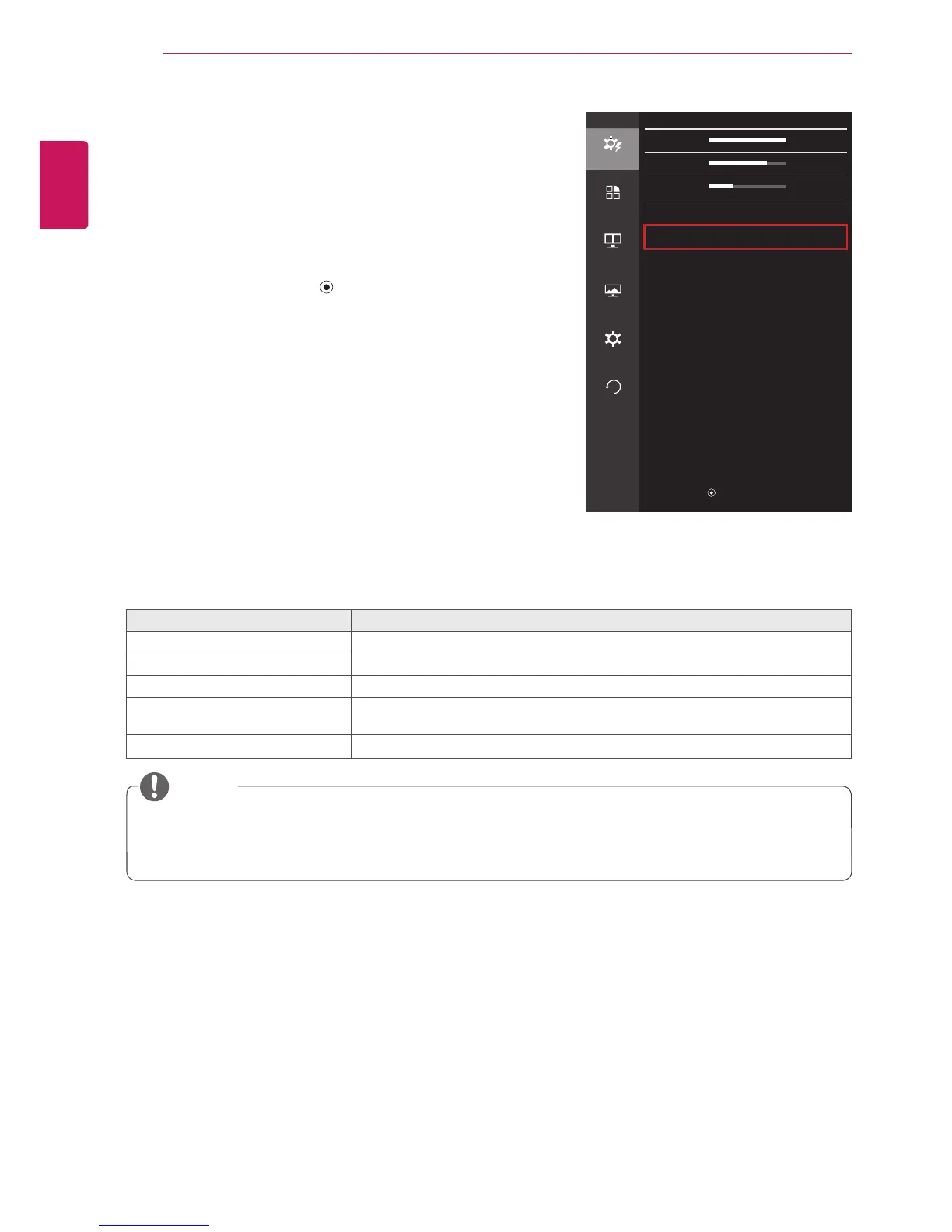 To view the OSD menu, press the joystick button at the