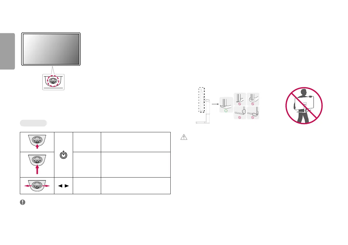 If you use the monitor panel without the stand base, its joystick button may cause the monitor to become