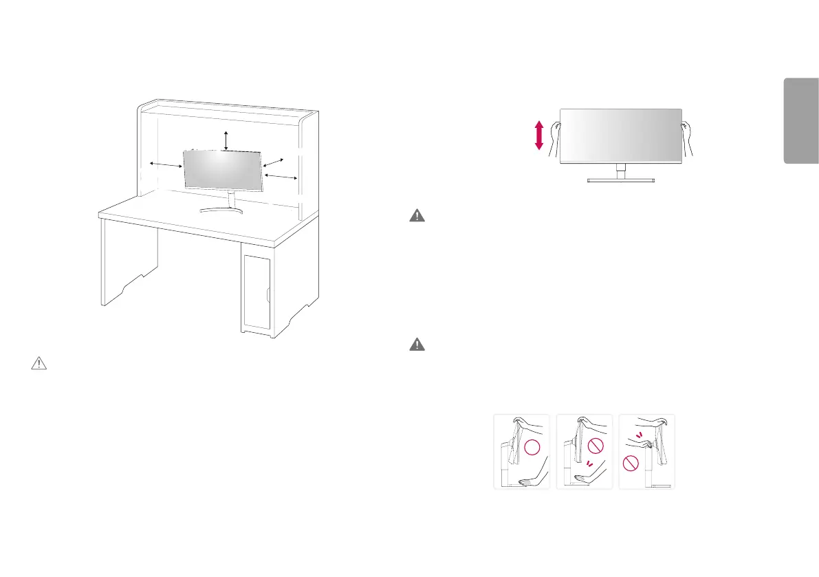 • When adjusting the screen height, do not place your hand on the stand body to avoid injury to your fingers.