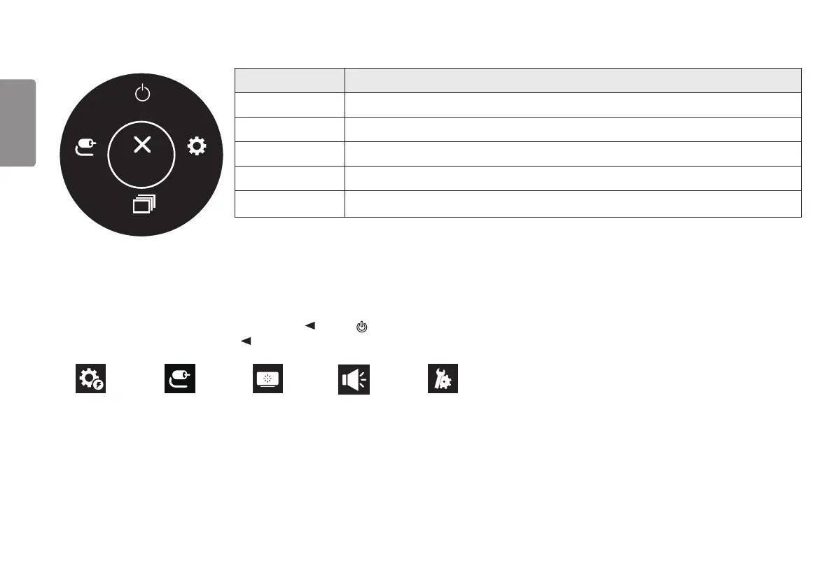 1 To view the OSD menu, press the joystick button at the bottom of the monitor and then enter the Settings.