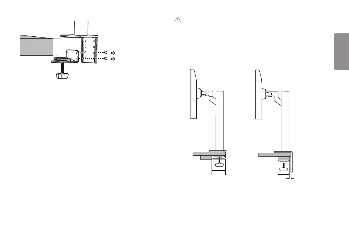 • Make sure the table is solid and stable enough to fully support installation of the monitor. Tables made of