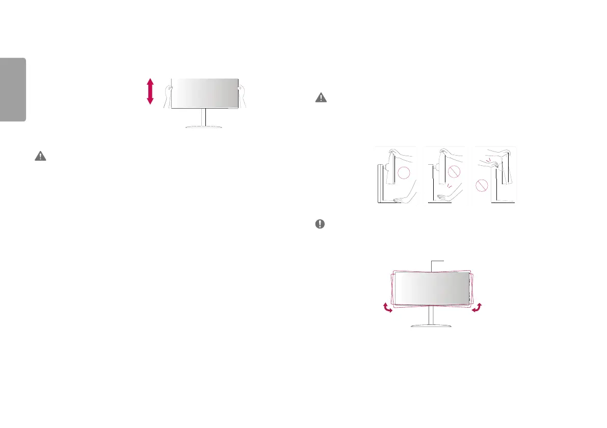 • To avoid injury to the fingers when adjusting the screen, do not hold the lower part of the monitor’s frame as