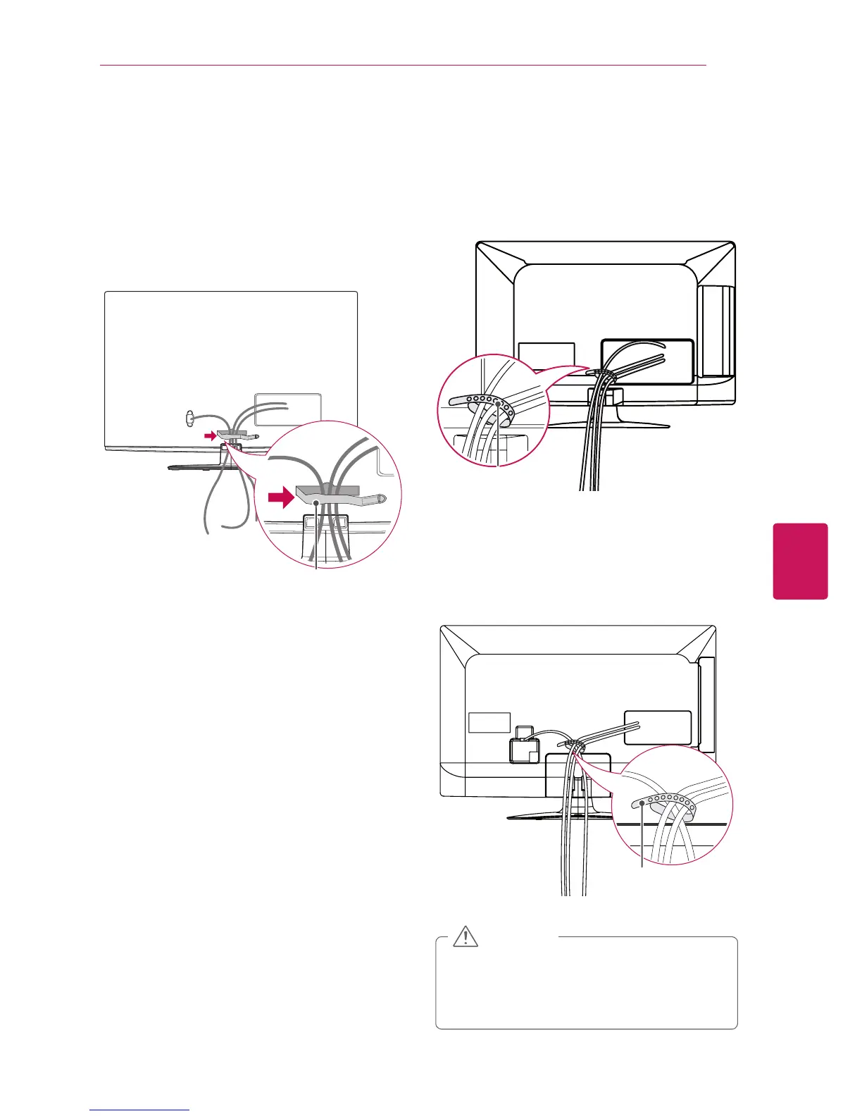 Fix the cable management clip firmly to the TV.