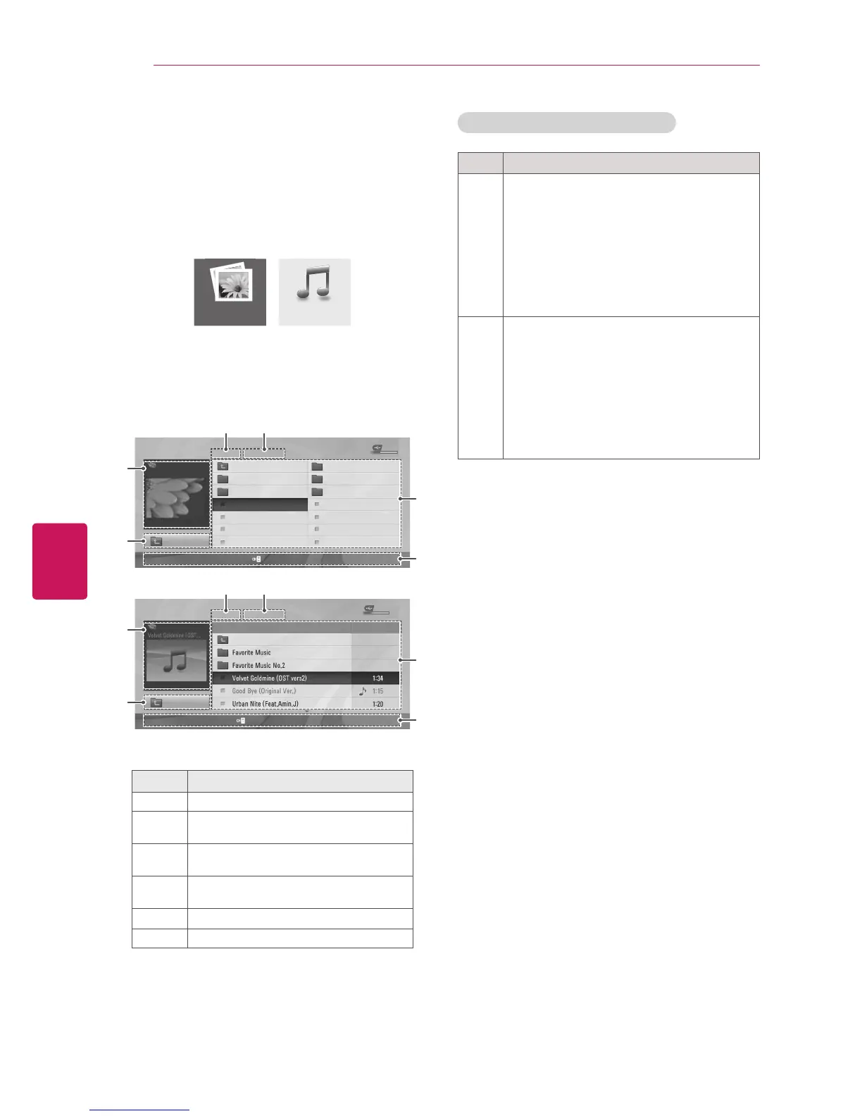 Access the photo or music lists and browse files.