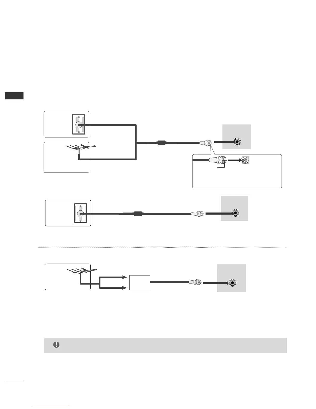 If the antenna needs to be split for two TV’s, install a 2-Way Signal Splitter.
