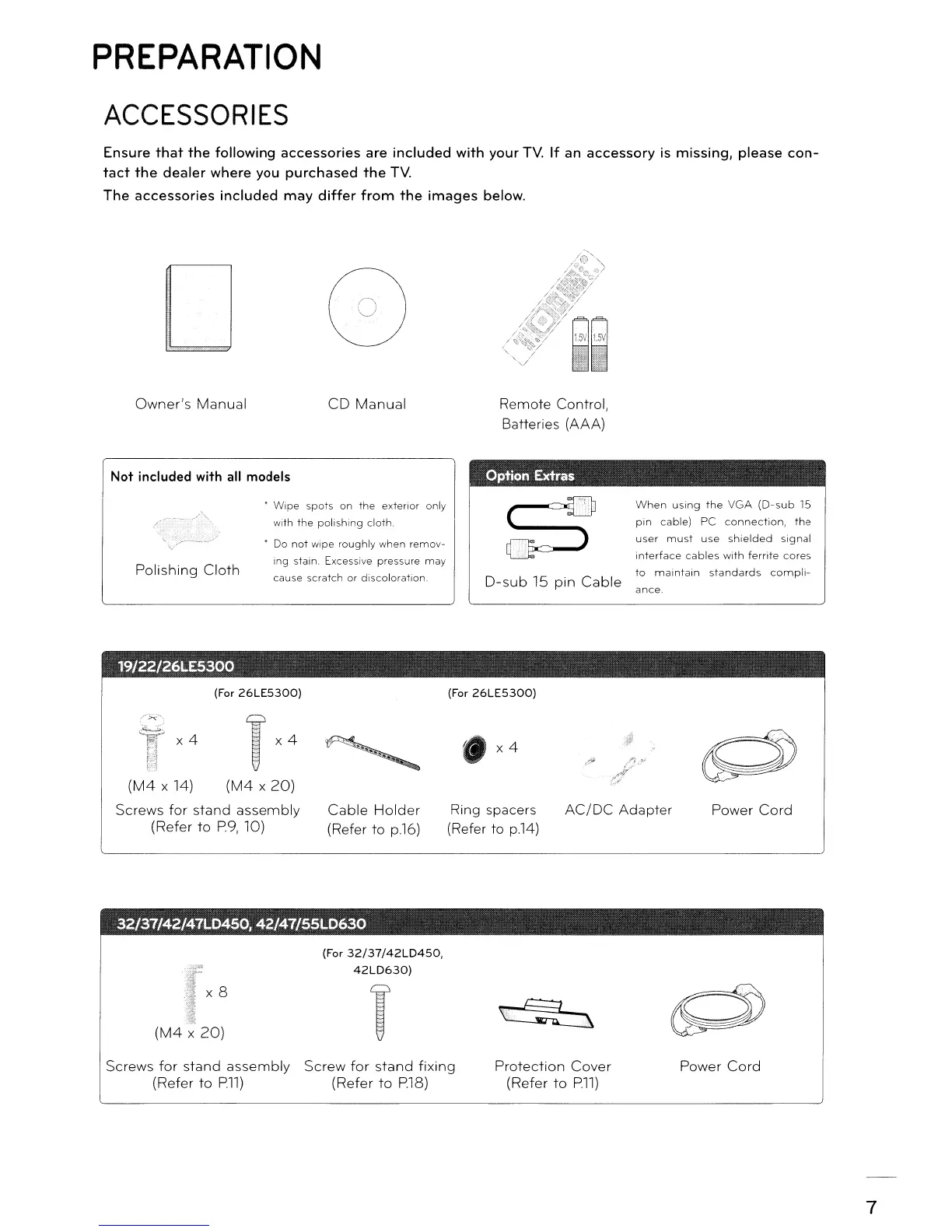 LG 37LD450 - PREPARATION; ACCESSORIES