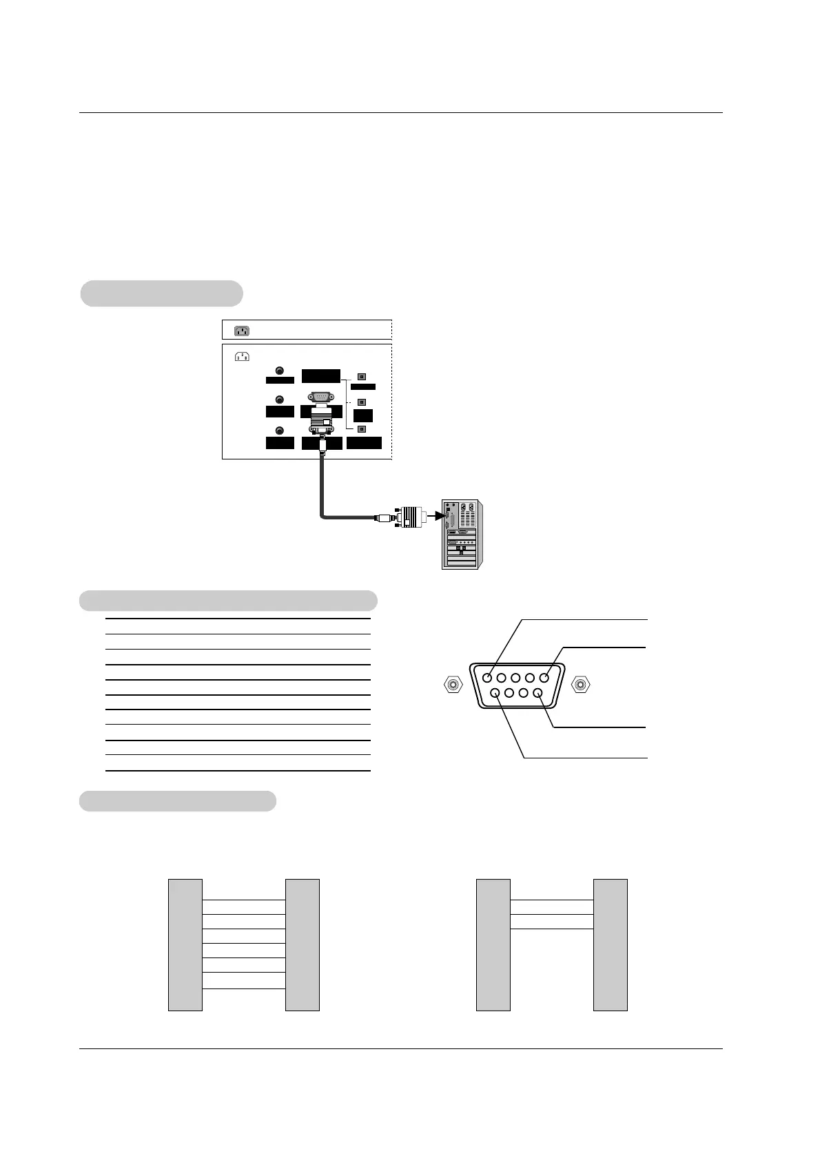 - Connect the serial port of the control device to the RS-232C jack on the TV back panel.