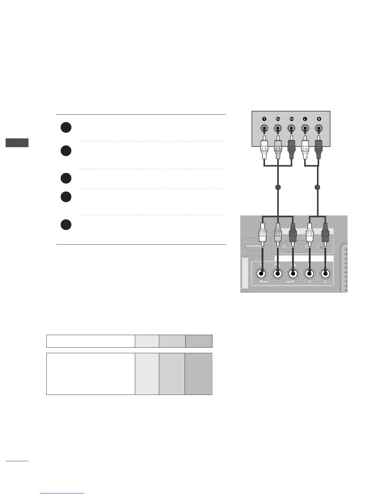To get better picture quality, connect a DVD player to the component input ports as shown below.