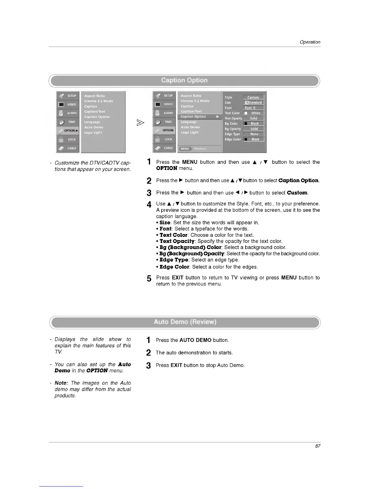 LG 37LP1D - Caption Option; Auto Demo (Review)