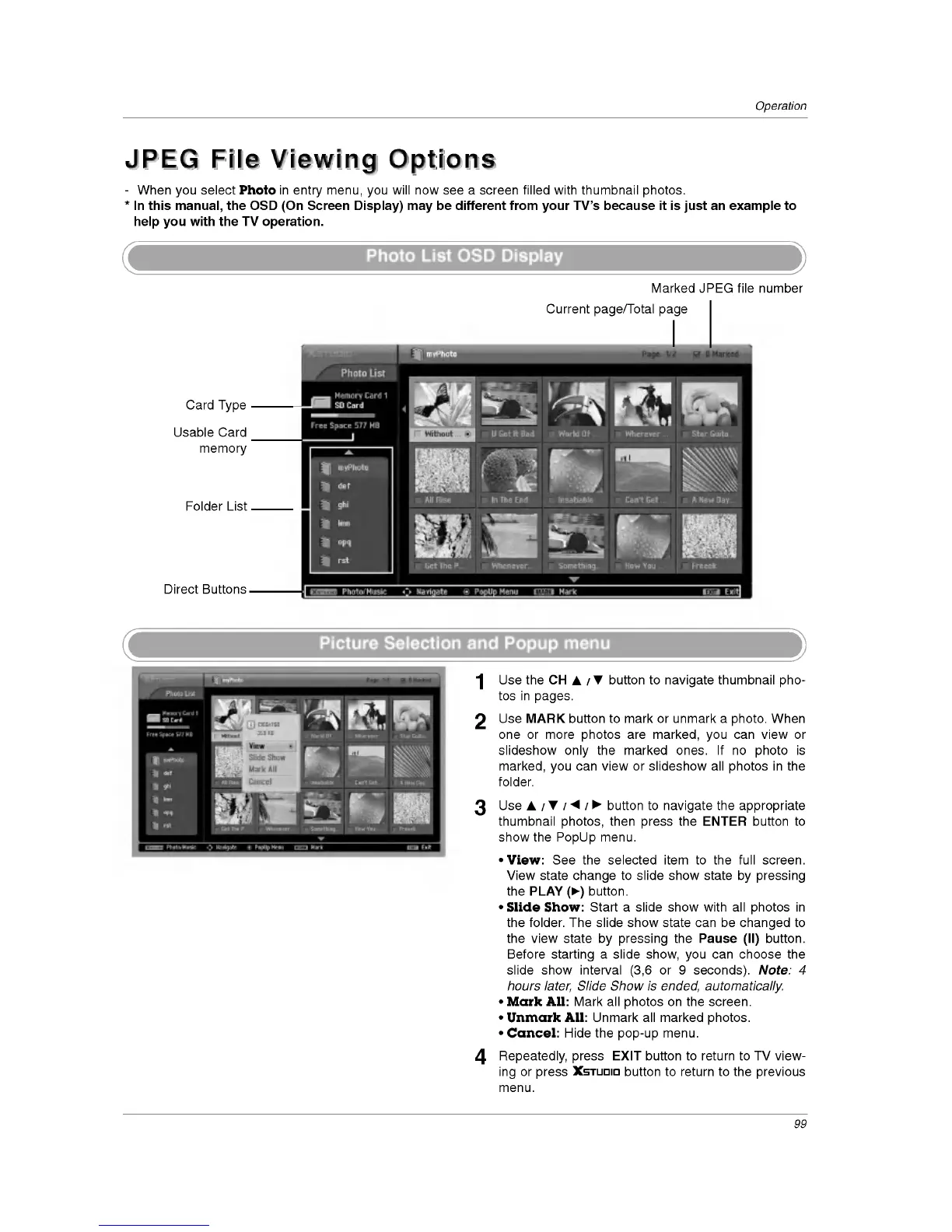 LG 37LP1D - Photo List OSD Display; Picture Selection and Popup