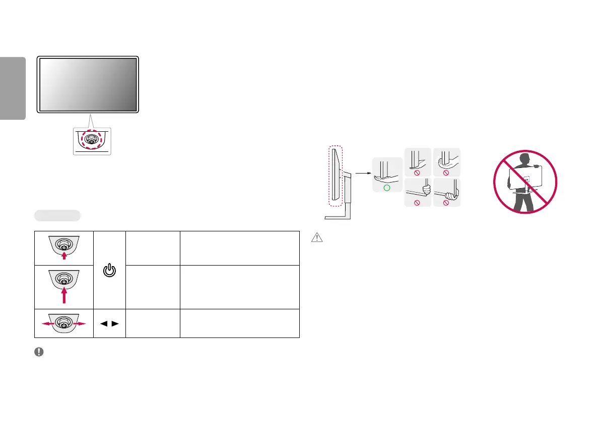 • If you use the monitor panel without the stand base, its joystick button may cause the monitor to become