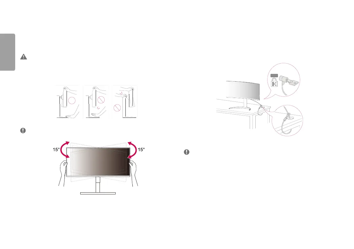 Be careful not to touch or press the screen area when adjusting the angle of the monitor.
