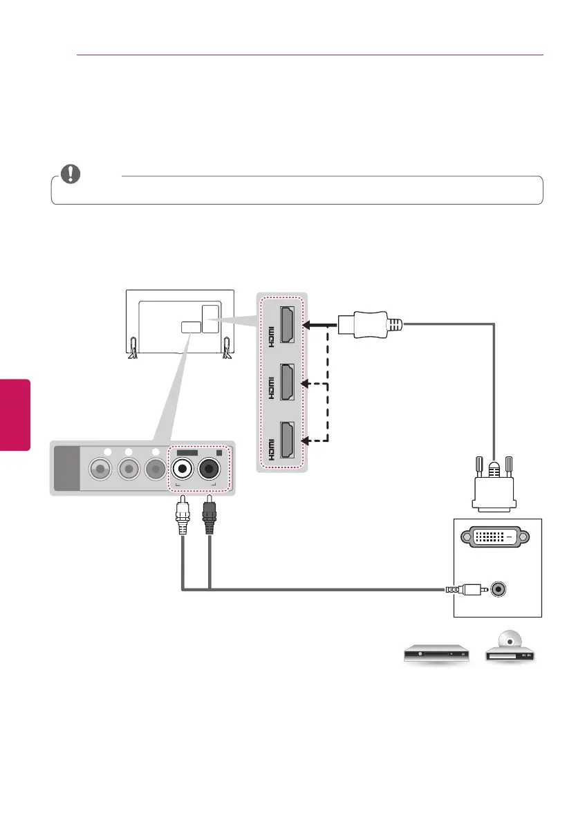 the TV with the DVI-HDMI cable as shown in the following illustration. To transmit an audio signal,