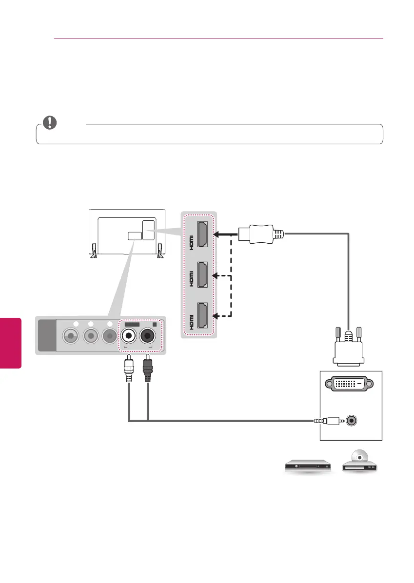 externo y el televisor con el cable DVI-HDMI tal como se muestra en la siguiente ilustración. Para