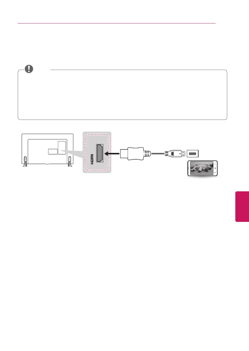 Conecte el teléfono móvil al puerto HDMI IN 3 (MHL) para ver la pantalla del teléfono en el TV.
