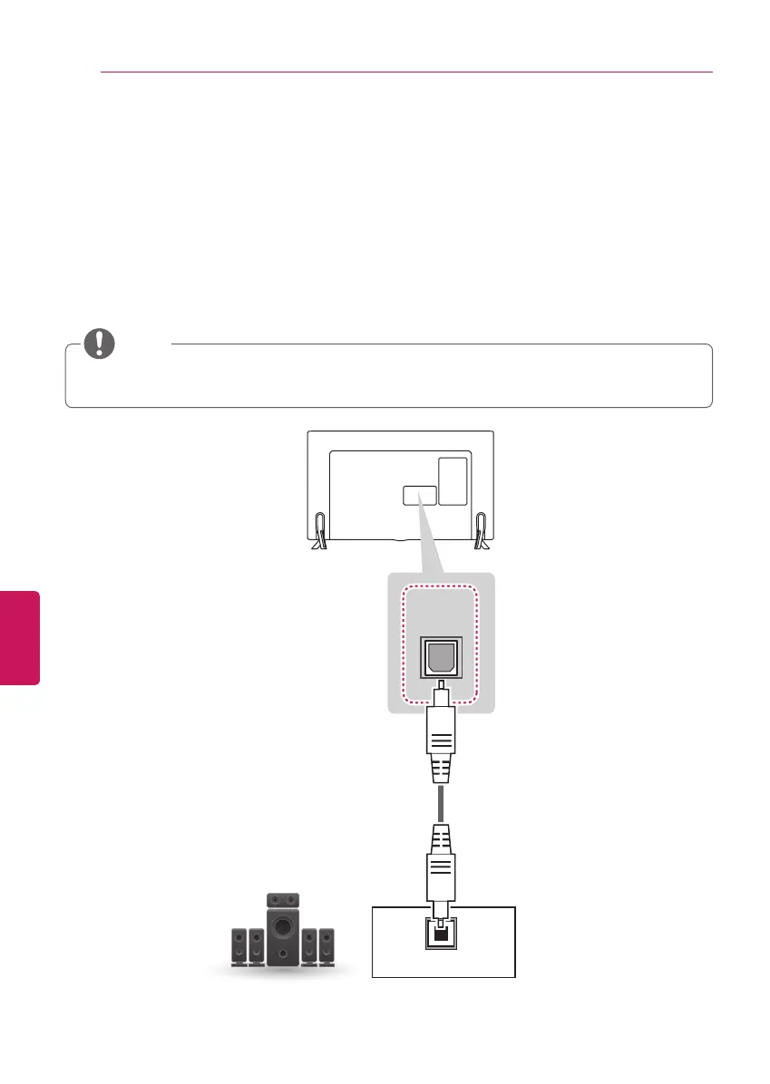Conecte el dispositivo externo y el televisor con el cable de audio óptico tal como se muestra en la