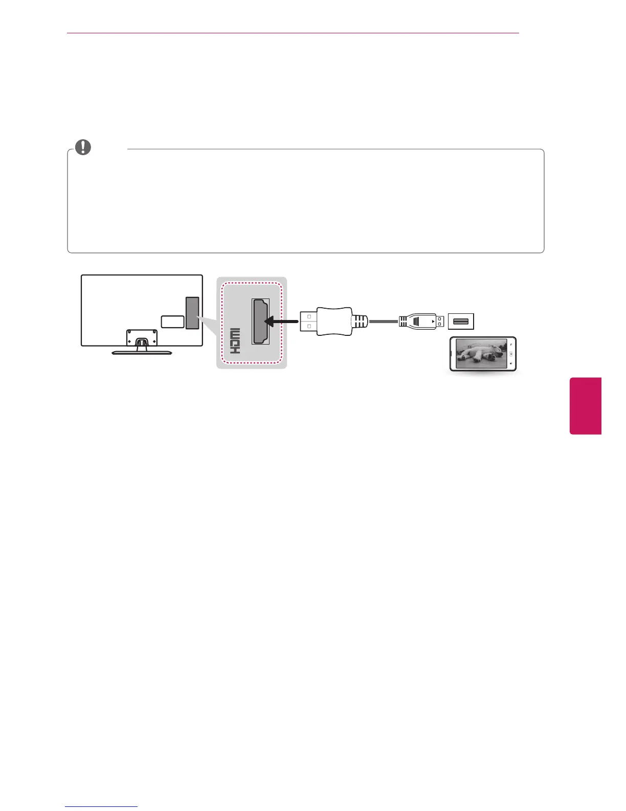 An MHL supported cable is needed to connect the TV and a mobile phone.