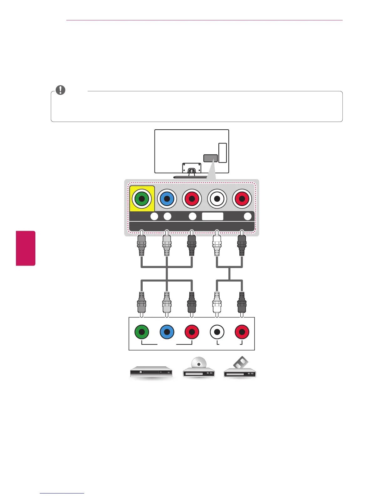 Transmits analog video and audio signals from an external device to the TV. Connect the external device