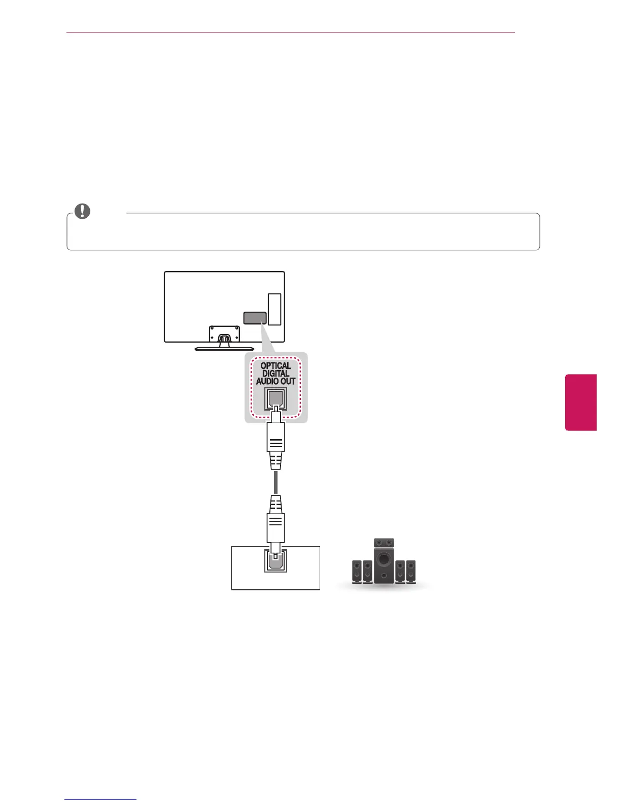 with the optical audio cable as shown in the following illustration.