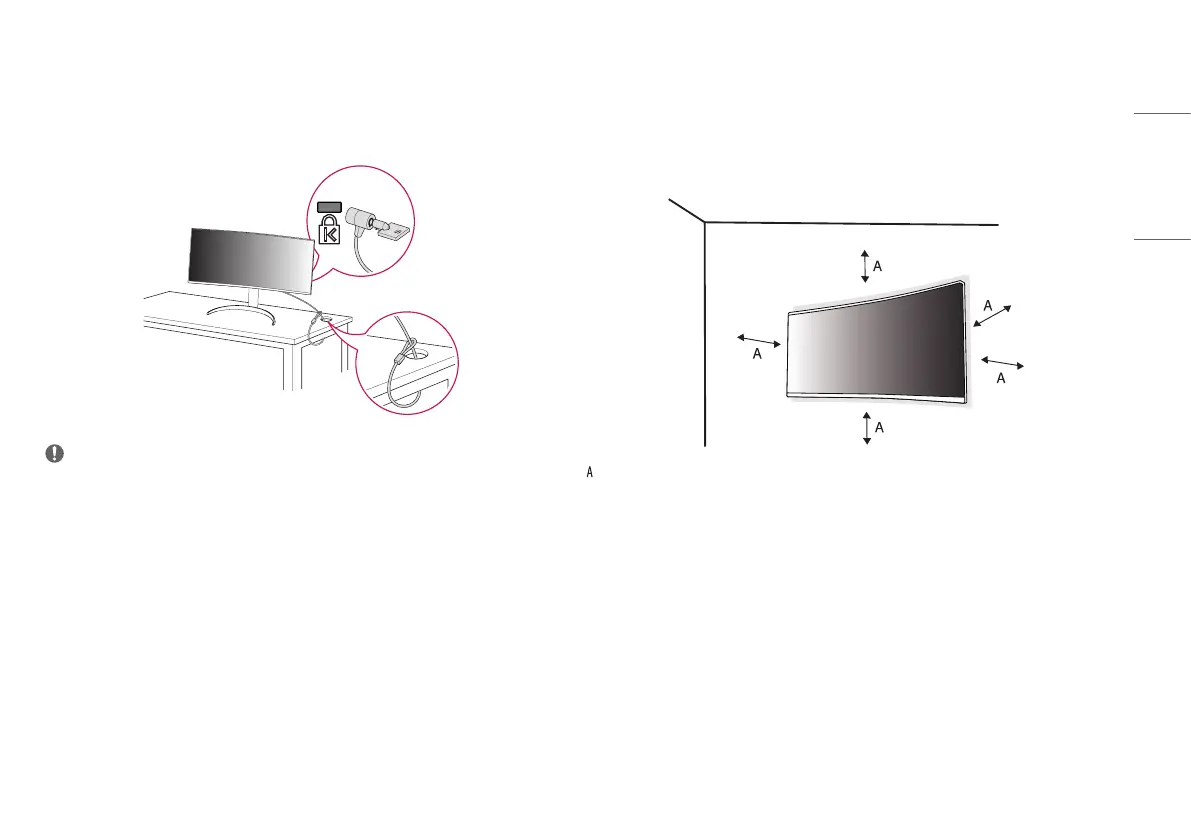 Install the monitor at least 100mm (3.9inches) away from the wall and leave about 100mm (3.9inches)