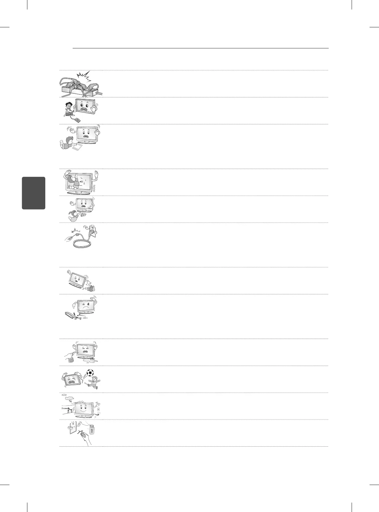 Impedire ai bambini di arrampicarsi o appendersi al televisore.