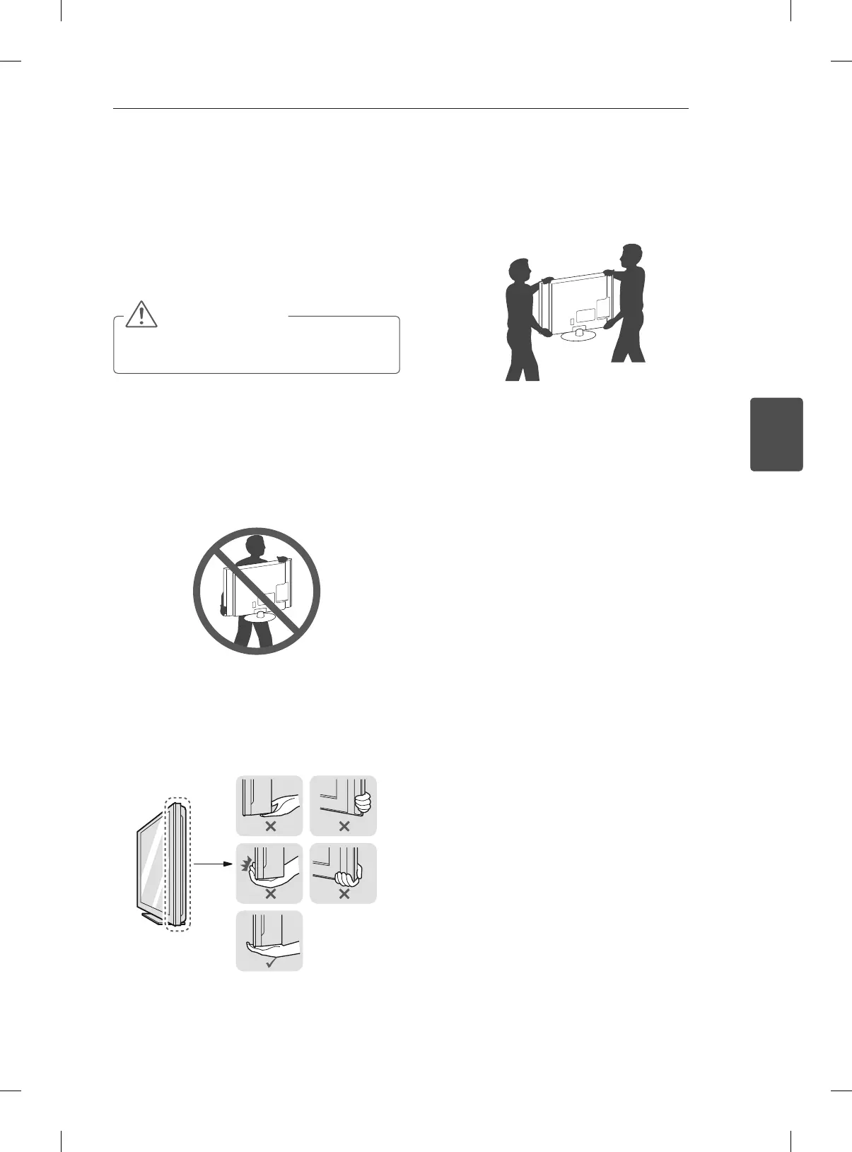 Durante il trasporto, tenere il televisore come