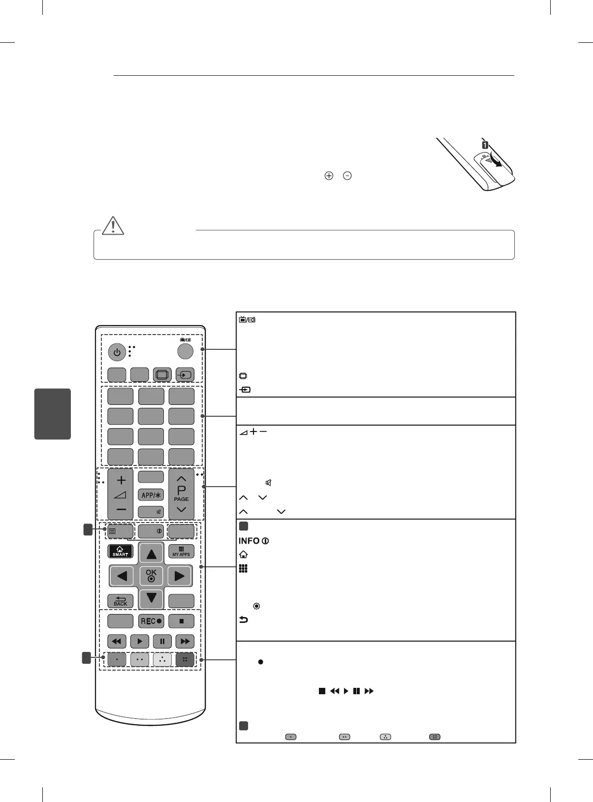 Não misture pilhas usadas com novas, pois isso pode danificar o controlo remoto.