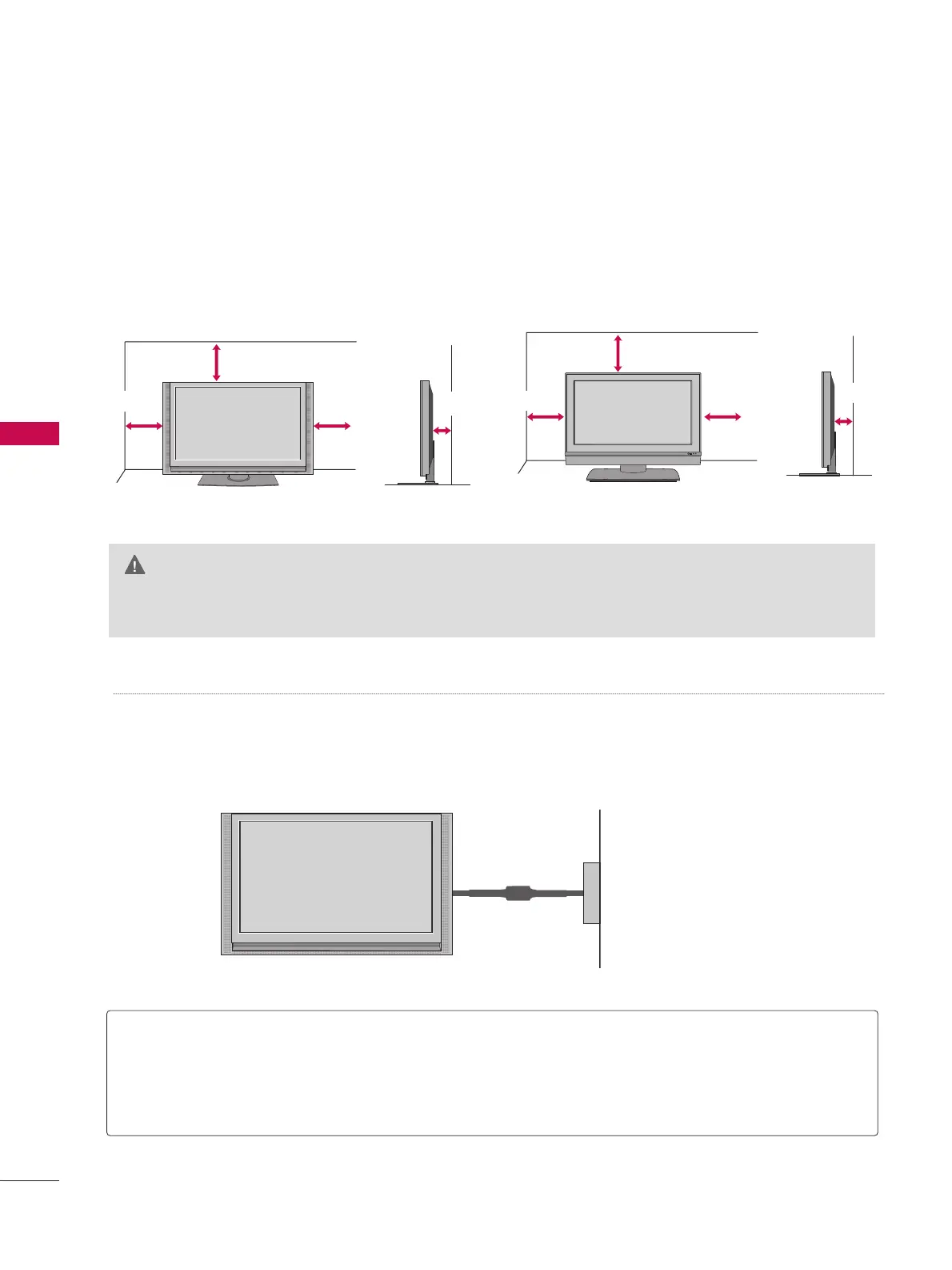 For proper ventilation, allow a clearance of 4inches on each side from the wall.