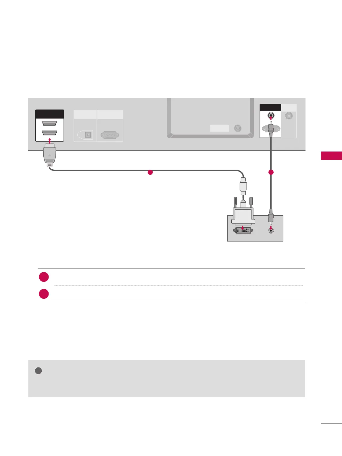 If the PC has a DVI output and no HDMI output, a separated audio connection is necessary.
