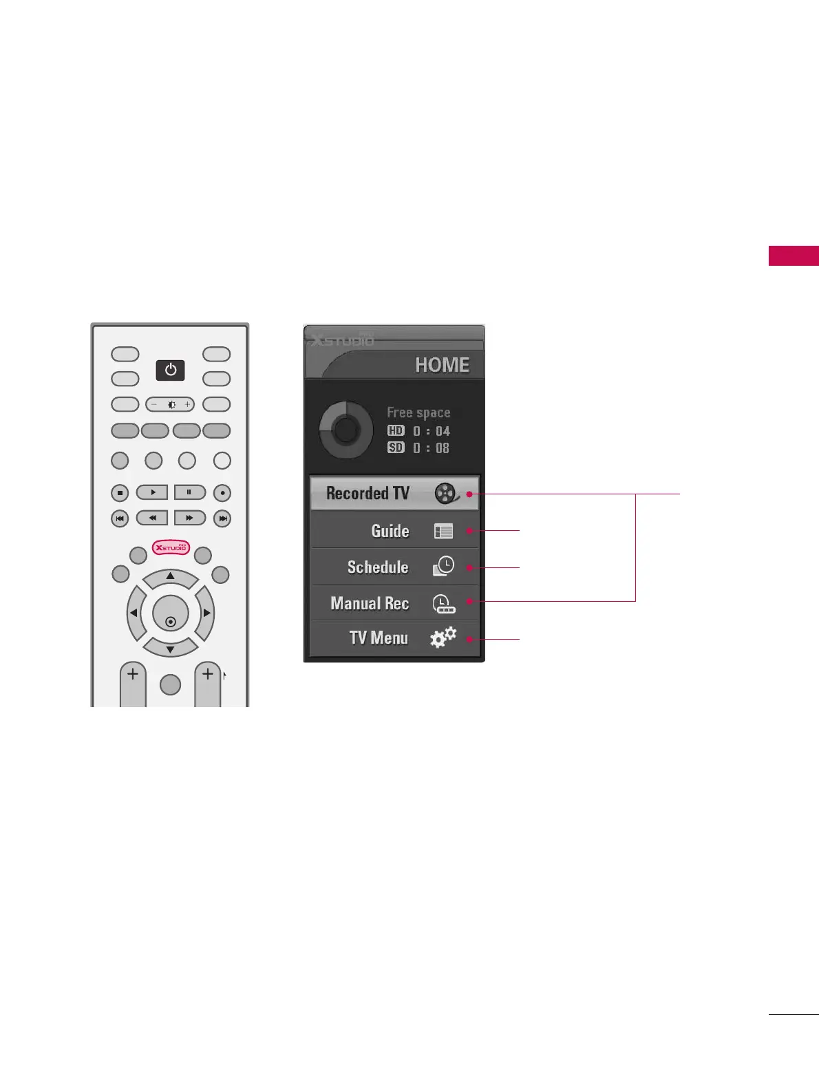 In the HOME Menu, you can access the recorded list of DVR, the TV Guide,