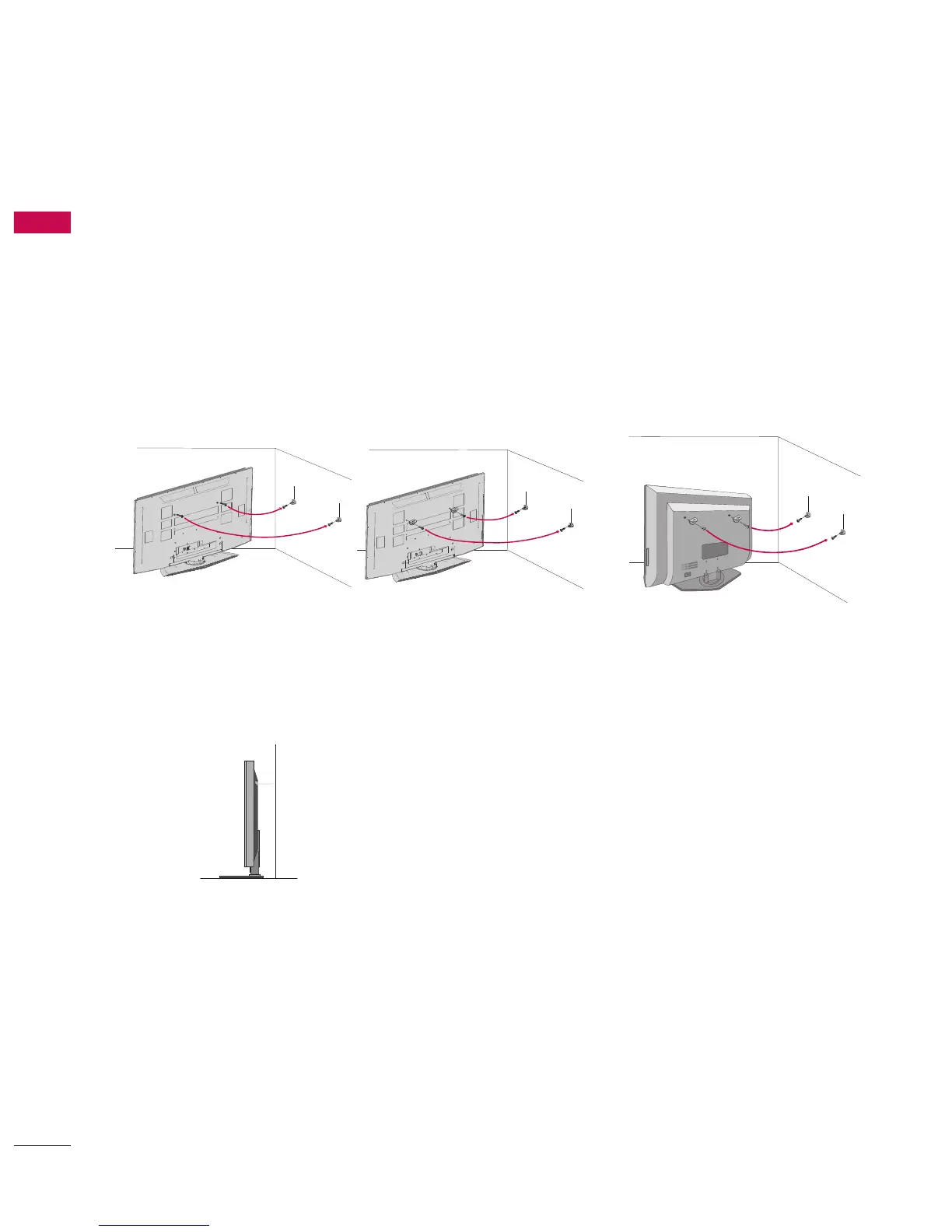 We recommend that you set up the TV close to a wall so it cannot fall over if pushed backwards.