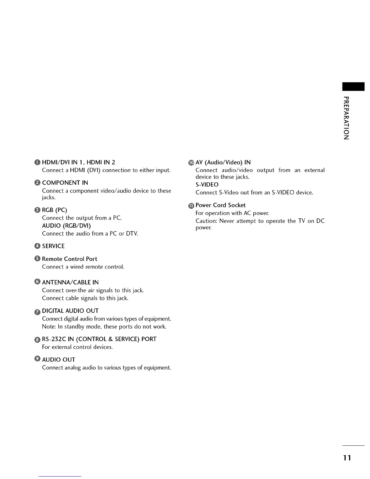 Caution: Never attempt to operate the TV on DC
