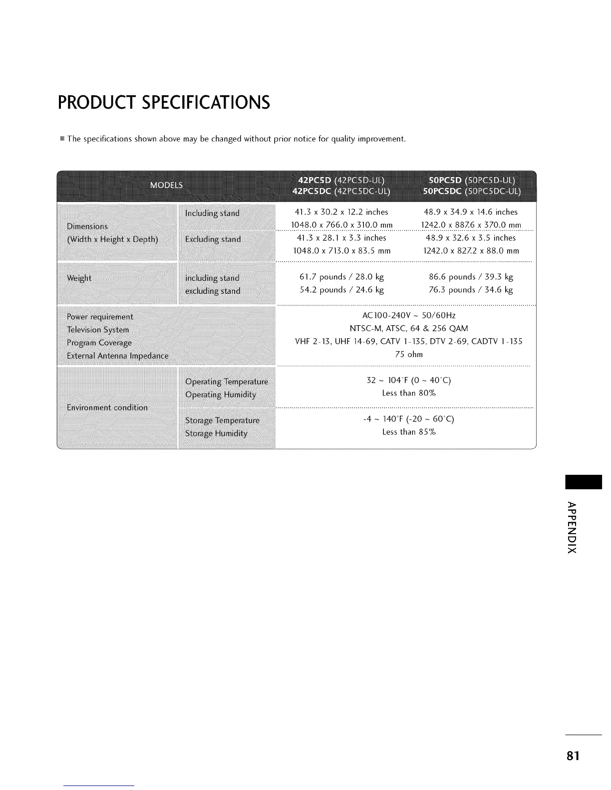 The specifications shown above may be changed without prior notice for quality improvement.