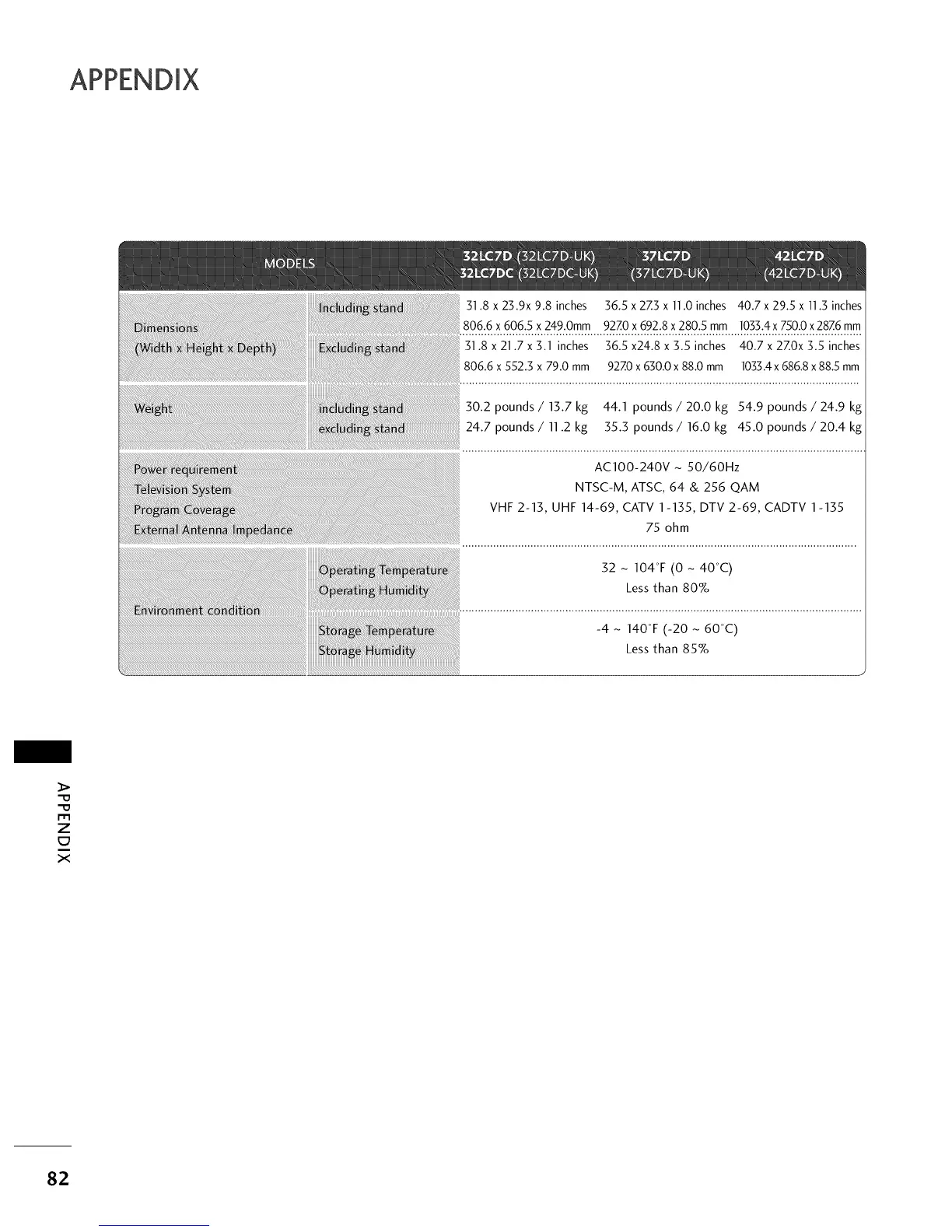 VHF 2-13, UHF 14-69, CATV 1-135, DTV 2-69, CADTV 1-135