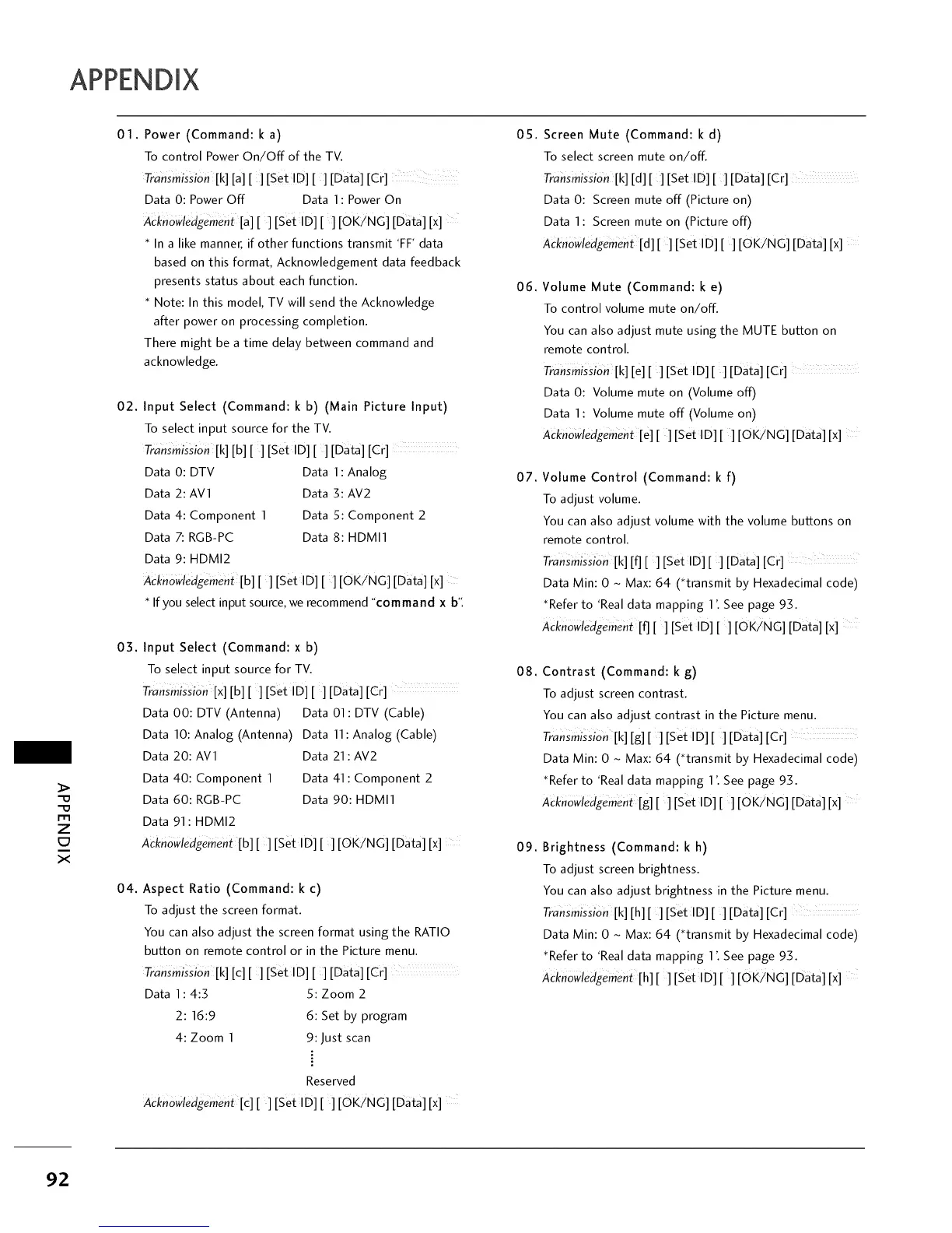 Data 00: DTV (Antenna) Data 01 : DTV (Cable)
