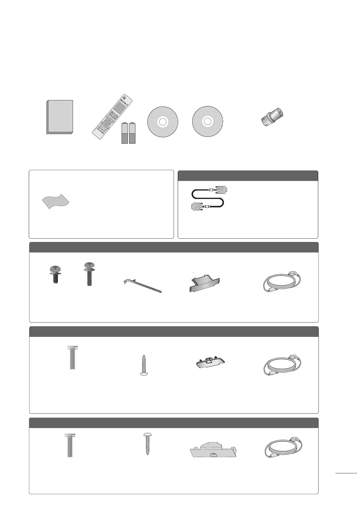 Asegurese de que los siguientes accesorios estén incluidos con su TV. Si algún accesorio no está inclu-