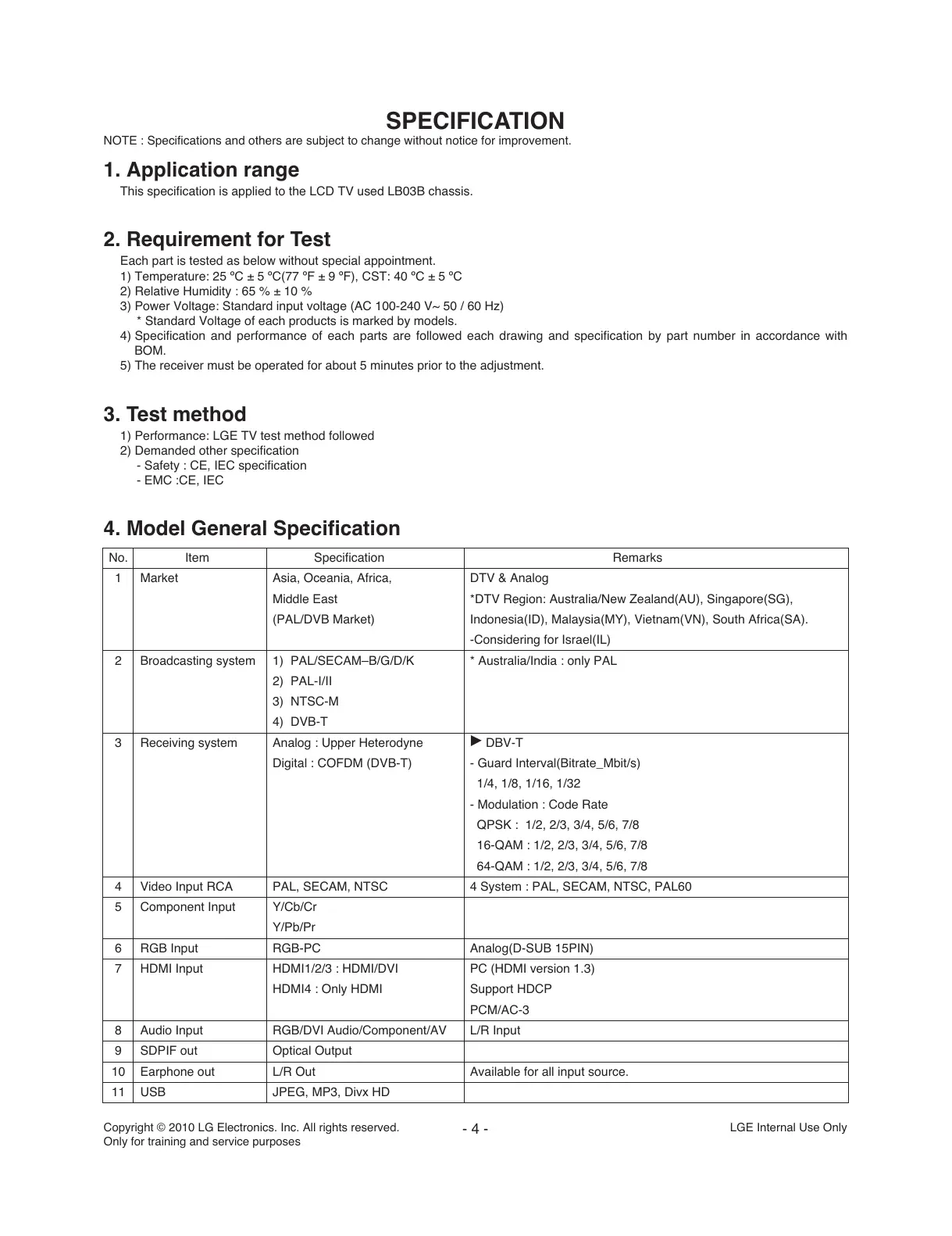 This specification is applied to the LCD TV used LB03B chassis.