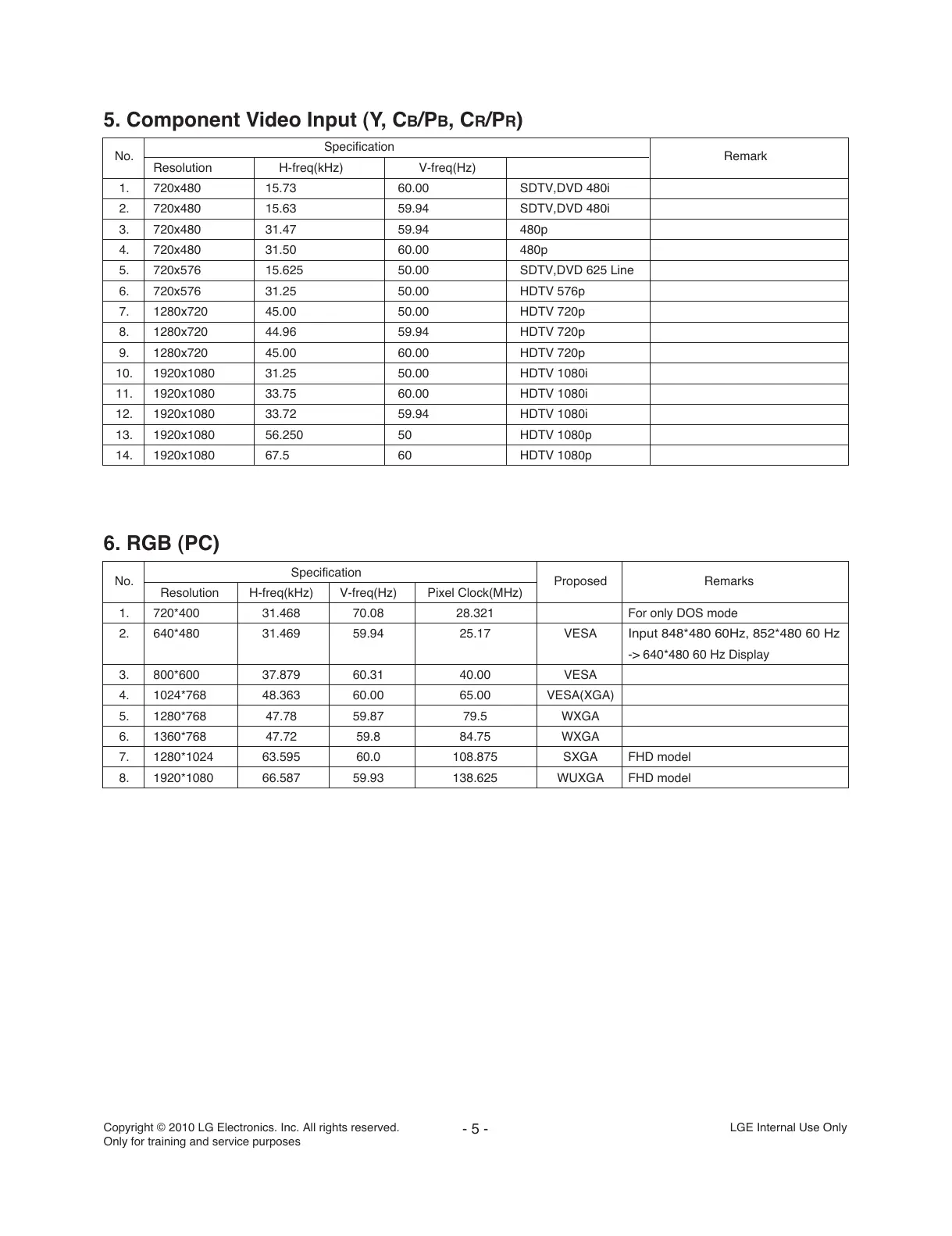 5. Component Video Input (Y, CB/PB, CR/PR)