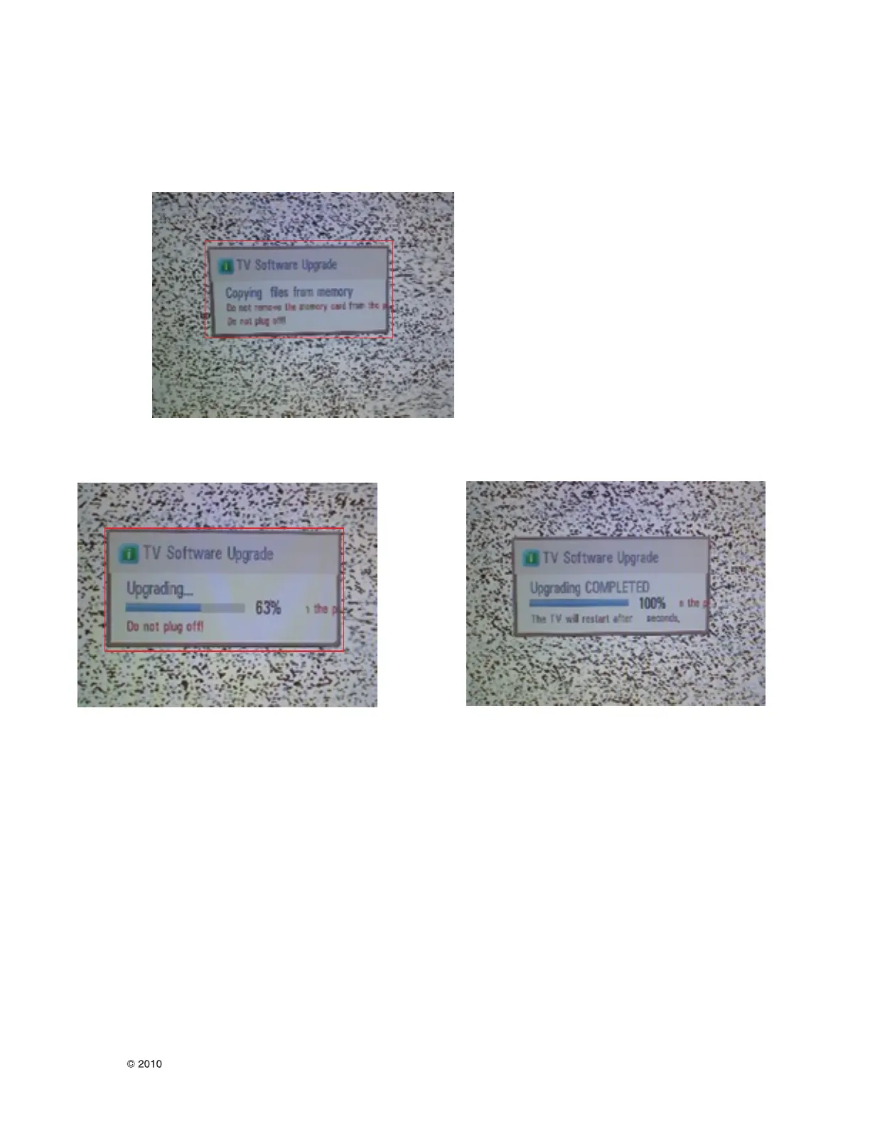 (5) Updating Completed, The TV will restart automatically