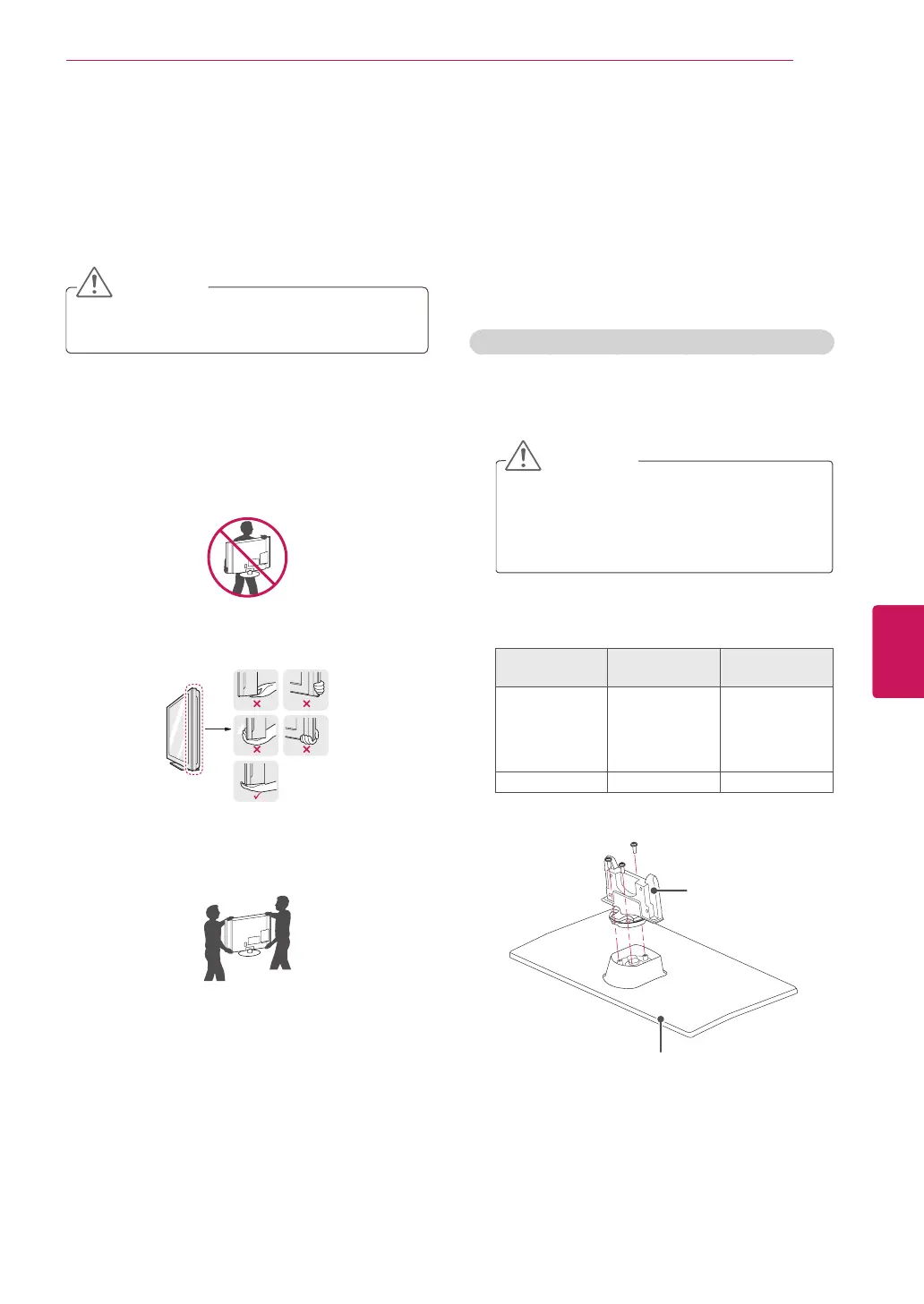 When moving or lifting the TV, read the following