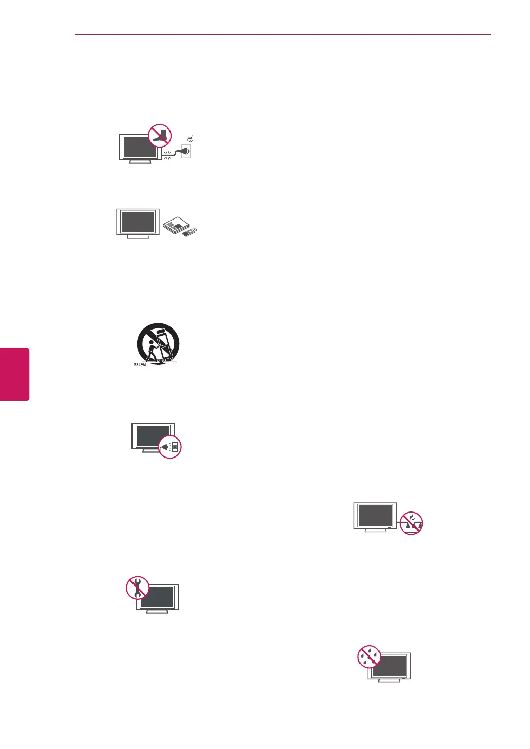 touch the TV with wet hands. Do not install