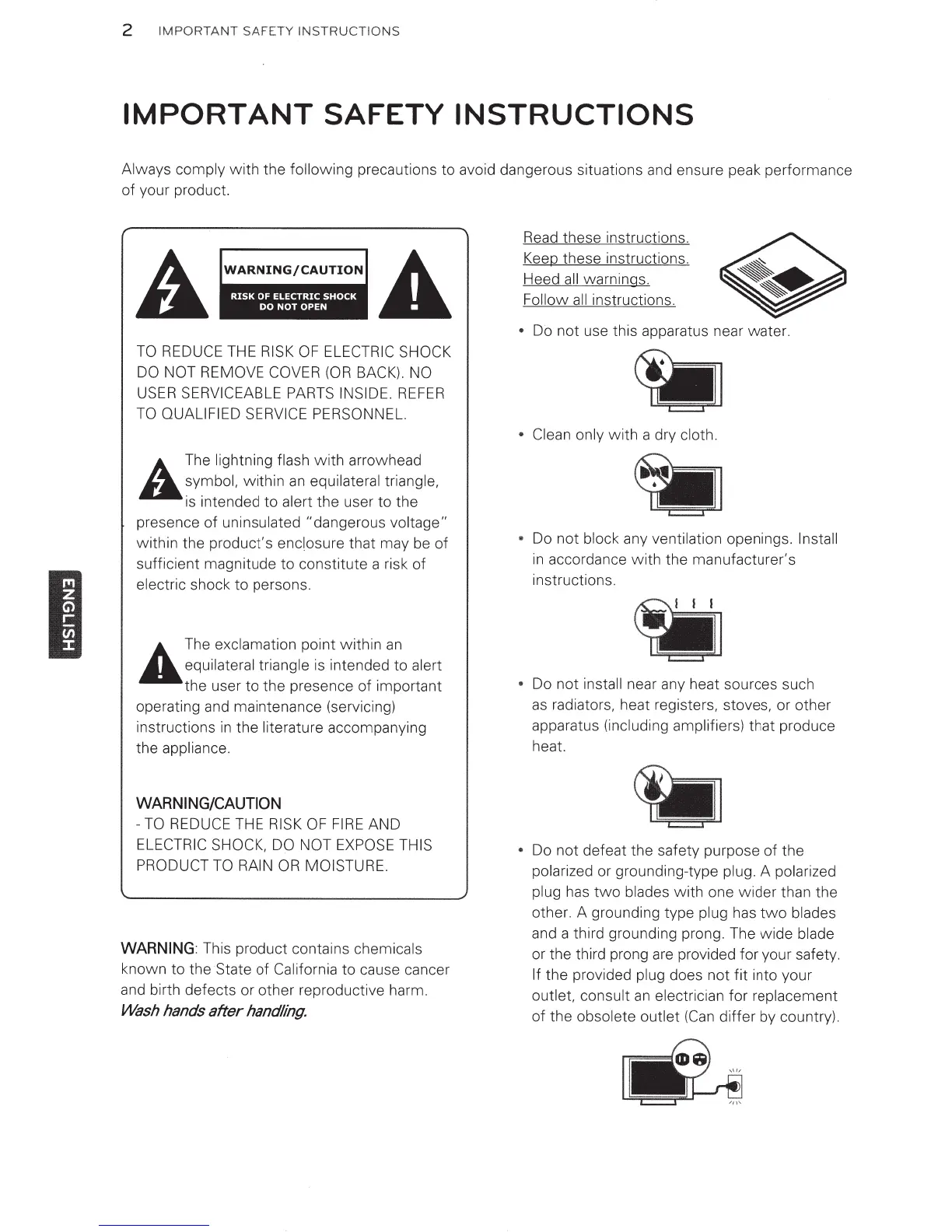 LG 42LS3450 - IMPORTANT SAFETY INSTRUCTIONS