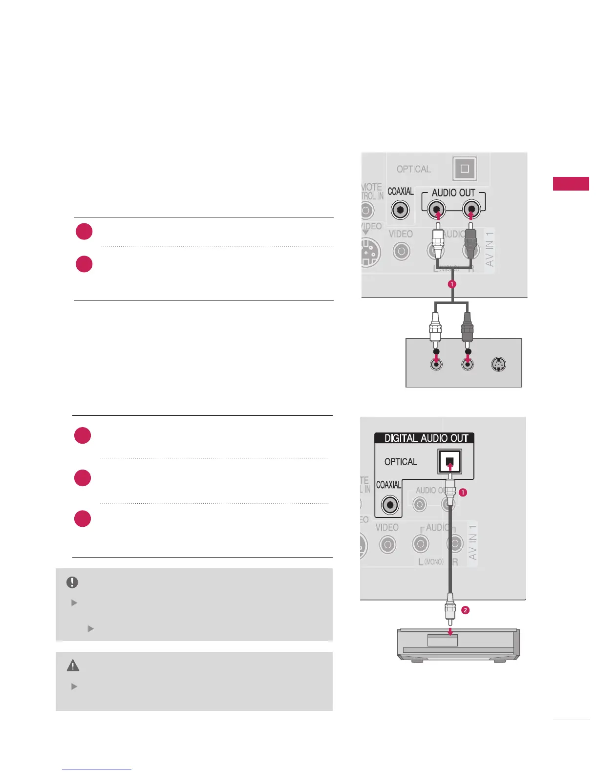 Connect audio outputs to the TV’s