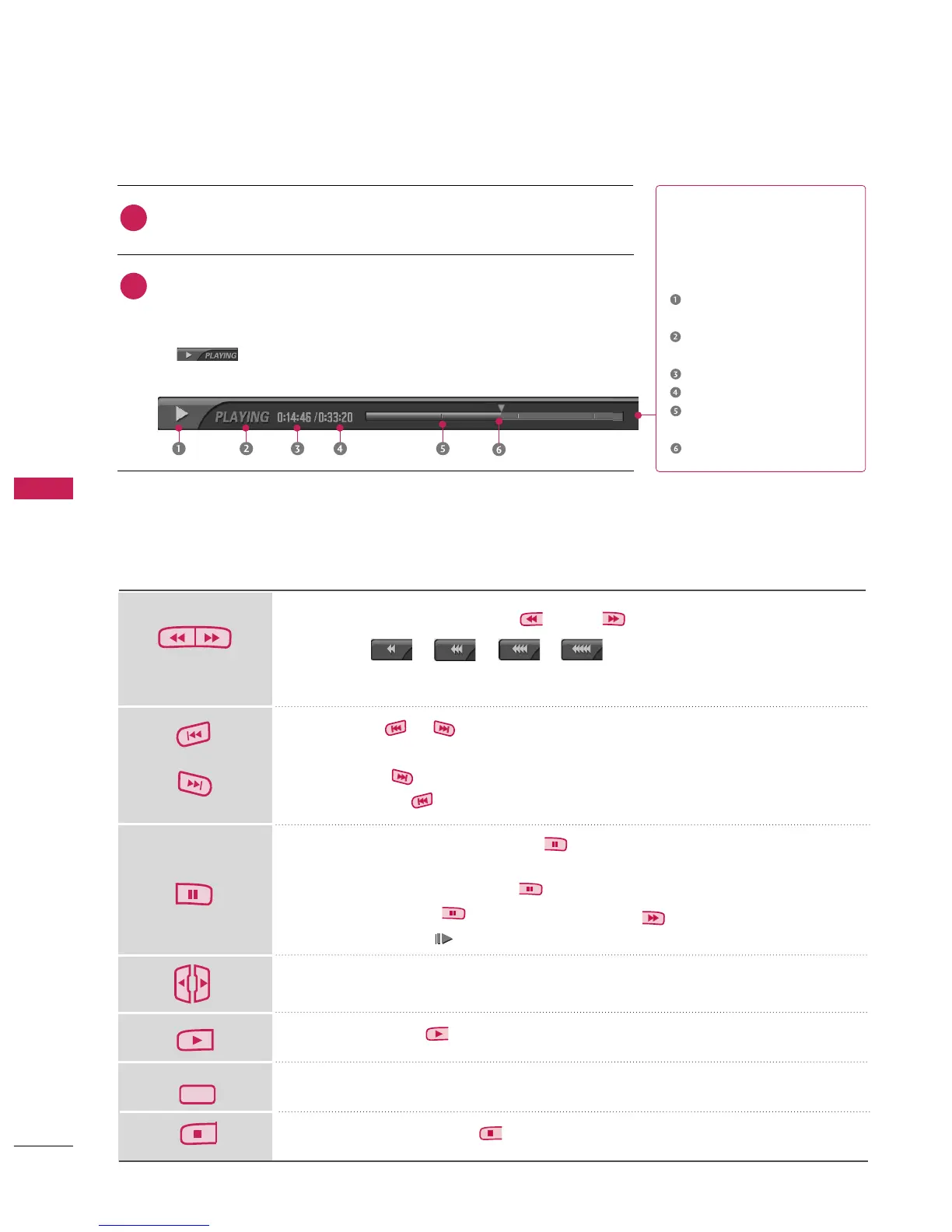 Pressing these buttons repeatedly increases the fast forward/reverse speed.