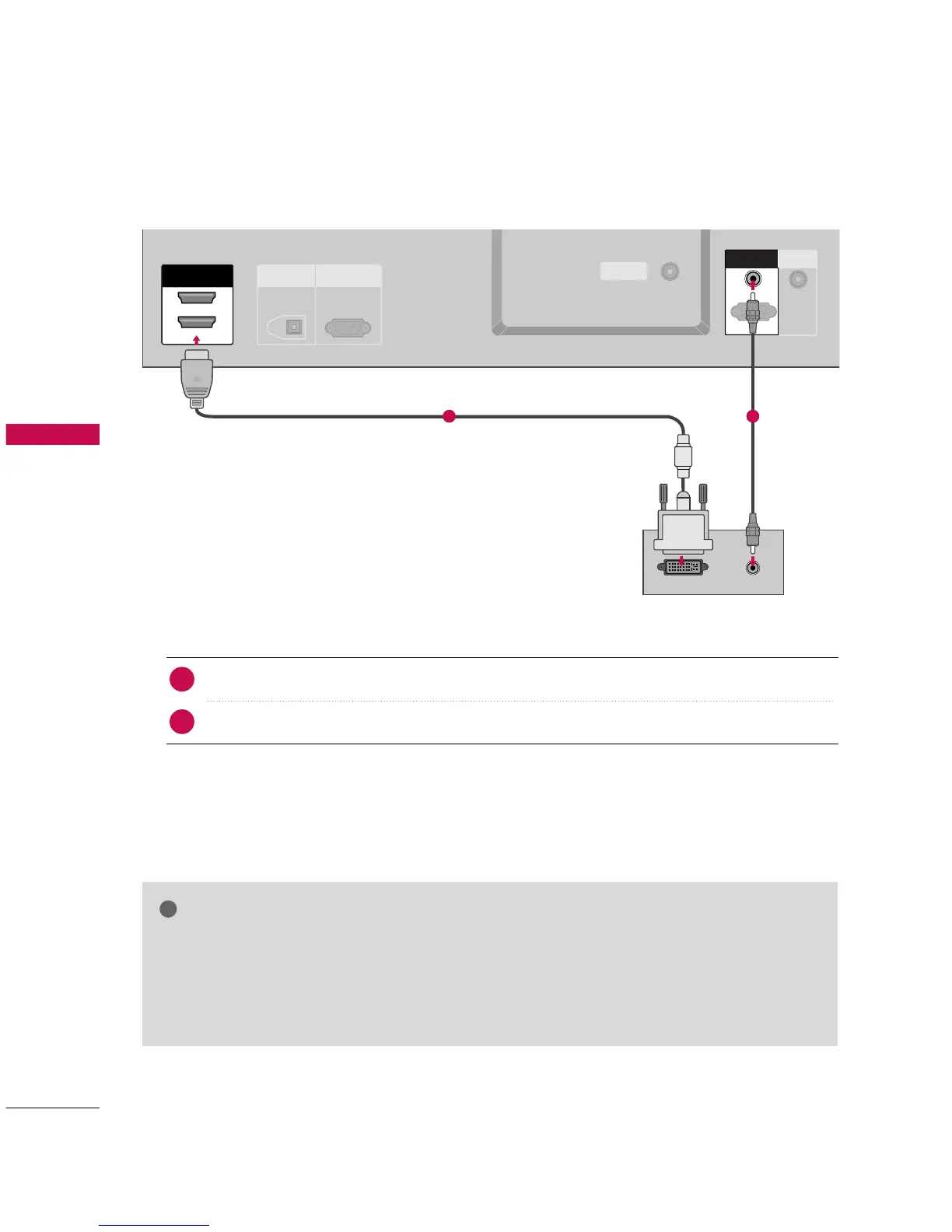 If the PC has a DVI output and no HDMI output, a separated audio connection is necessary.