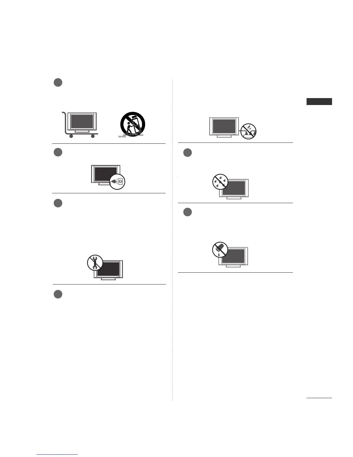 cords, frayed power cords, or damaged or