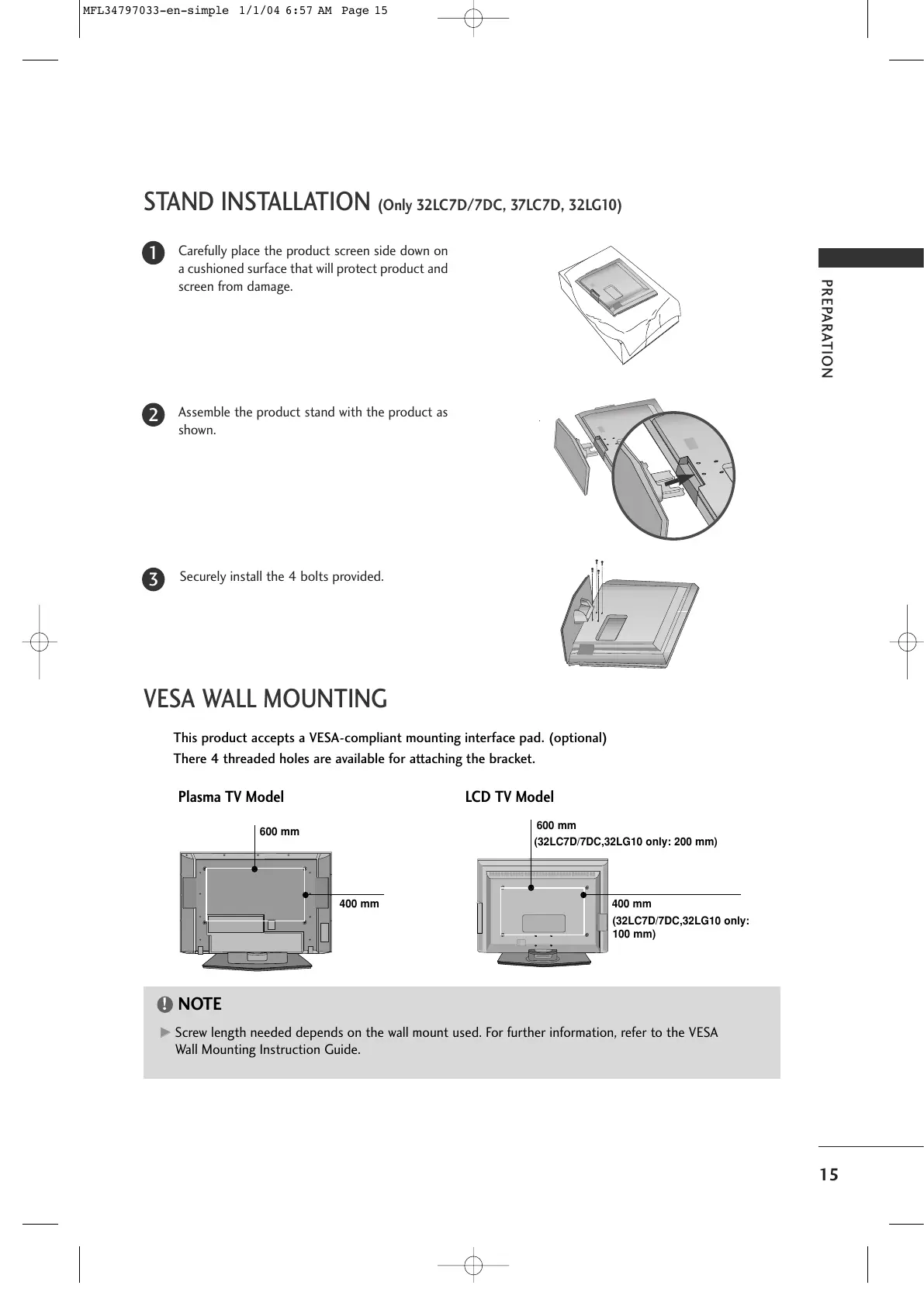 STAND INSTALLATION (Only 32LC7D/7DC, 37LC7D, 32LG10)