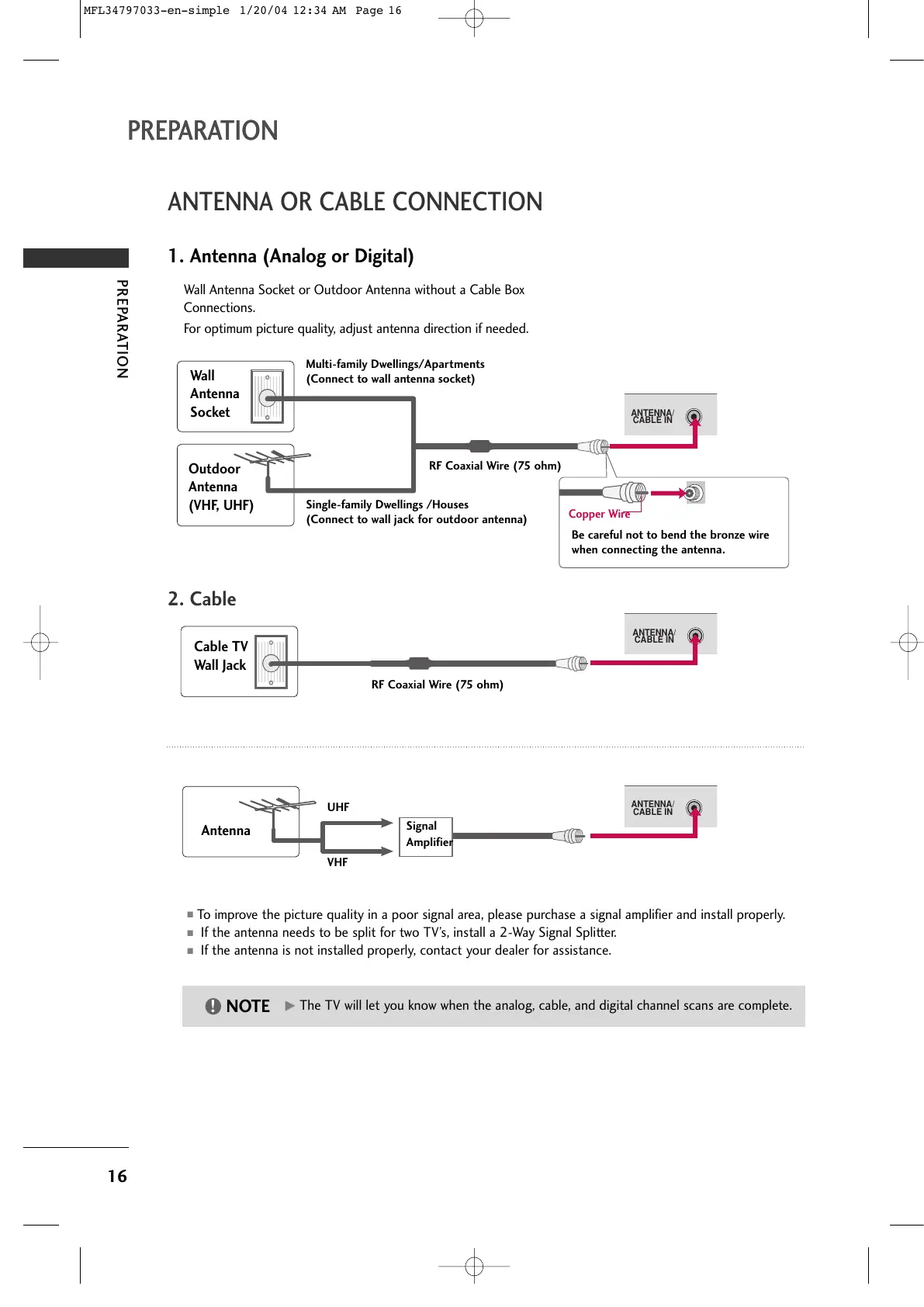 The TV will let you know when the analog, cable, and digital channel scans are complete.