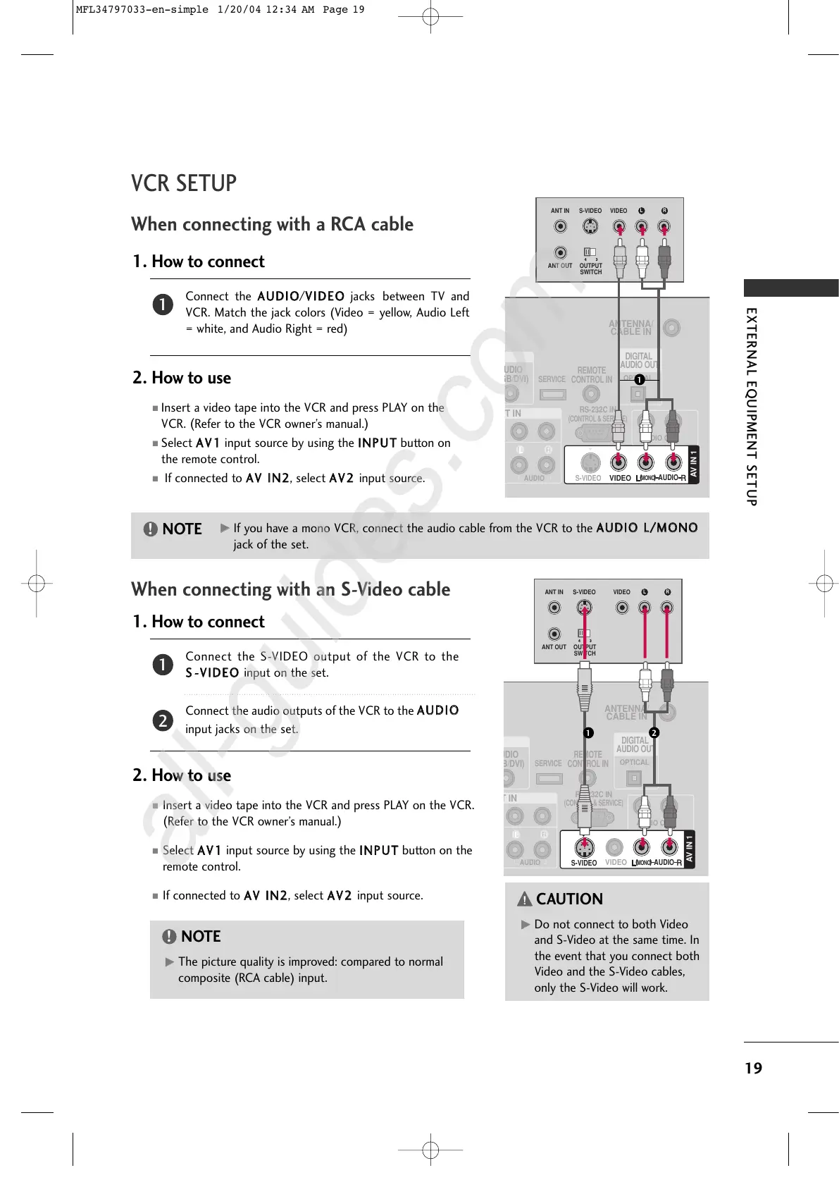 When connecting with an S-Video cable