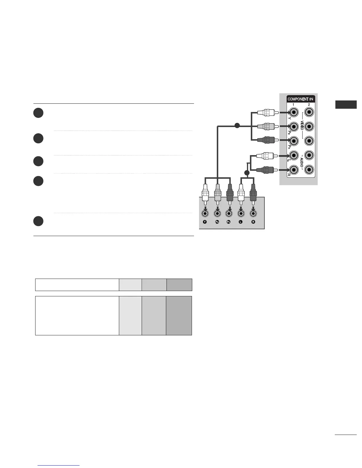To achieve better picture quality, connect a DVD player to the component input ports as shown below.